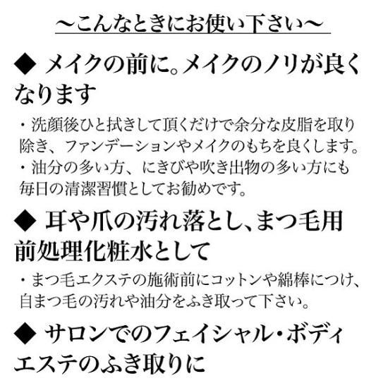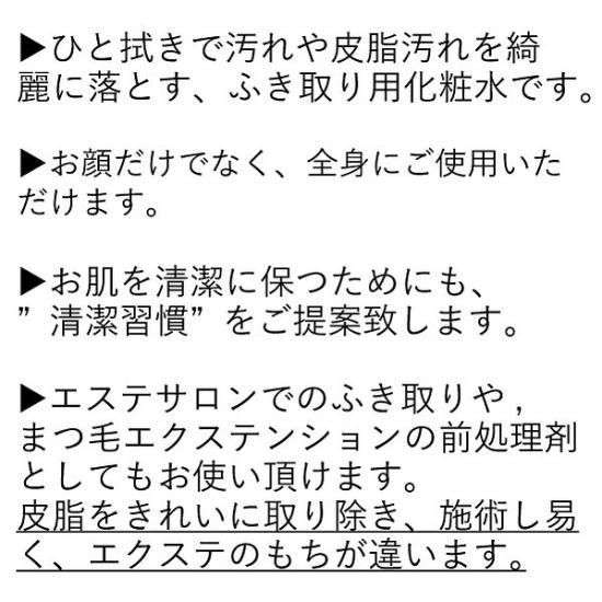 肌の汚れや皮脂汚れをきれいに落とす化粧水 サロンでのふき取りや、まつ毛エクステの前処理剤にも最適です!