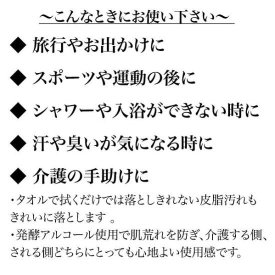 ・発酵アルコール使用で肌荒れを防ぎ、介護する側、される側どちらにとっても心地よい使用感です。